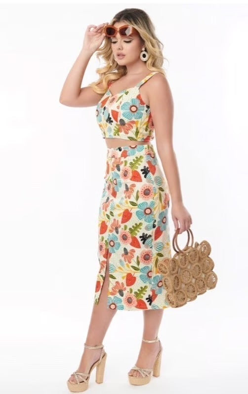 Bright & Beautiful Songbird Crop Top and Skirt Set