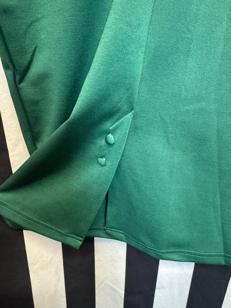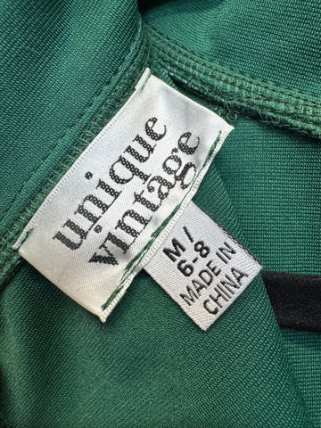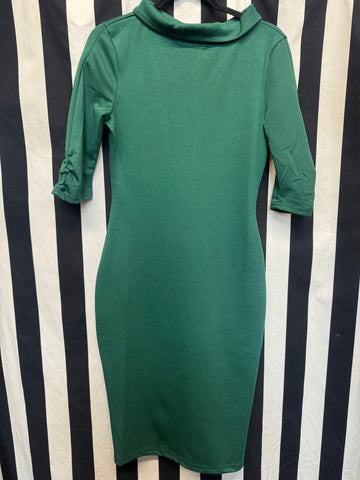 Gently used Unique Vintage "Cassidy" wiggle dress. Cowl neck, 3/4 sleeves with button detailing, back slit in skirt with buttons