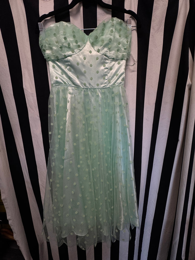 Unique vintage Strapless mint green dress