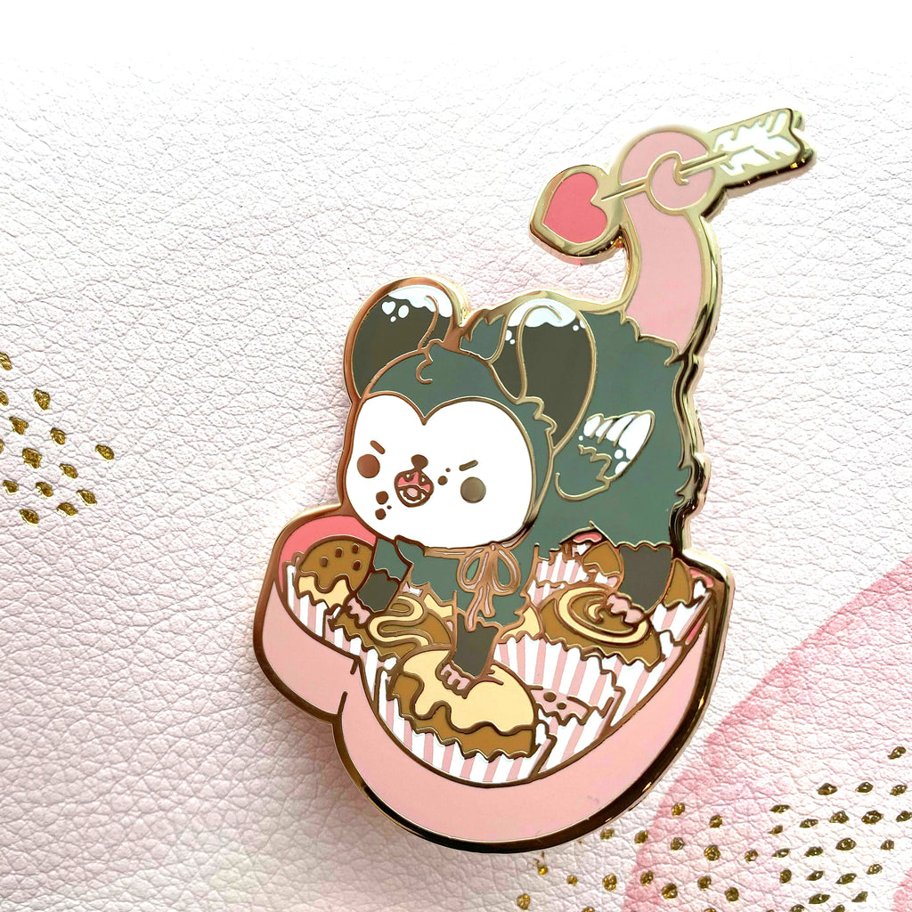Gold Plated Hard Enamel PinMeasures 65mm tall2 peg backs for extra supportRubber clutch backs on pegsIncludes illustrated backing card