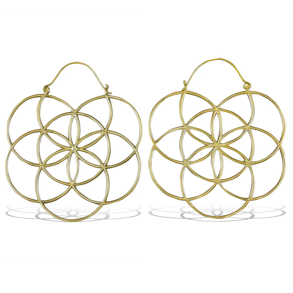 These brass earrings are extra-large 2.75" diameter. Inspired by elements of nature and Hindu artistry, each piece showcases delicate craftsmanship. The 18 gauge brass posts ensure a comfortable fit for standard pierced ears.