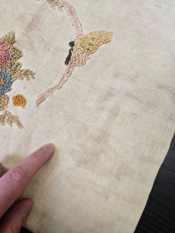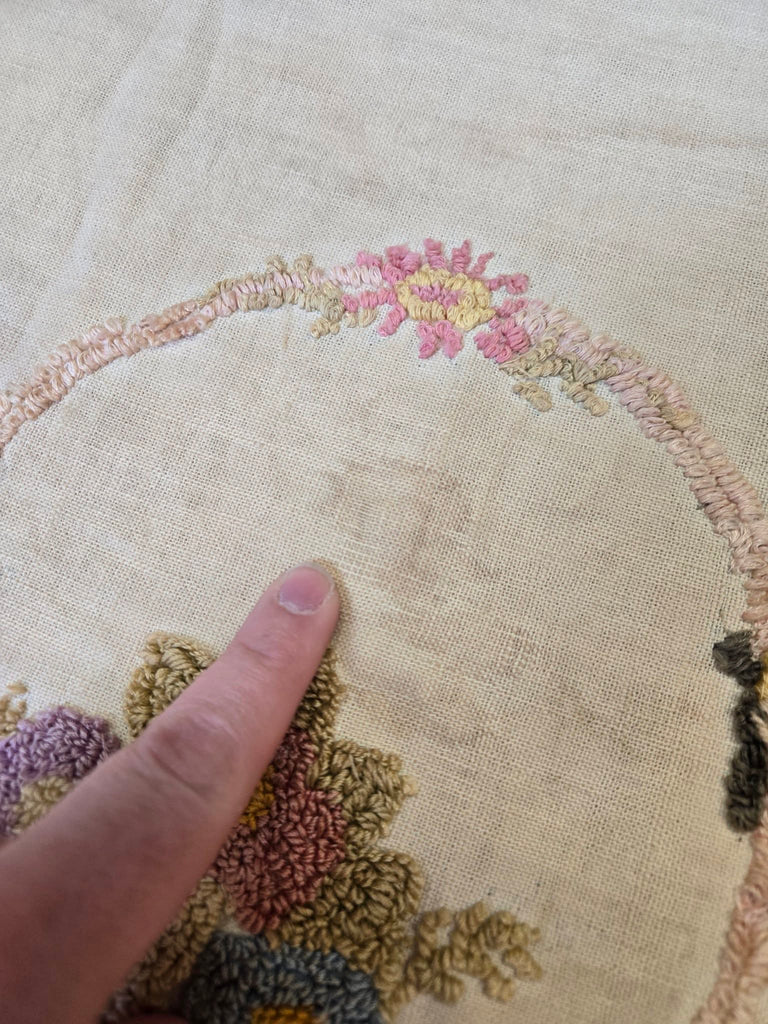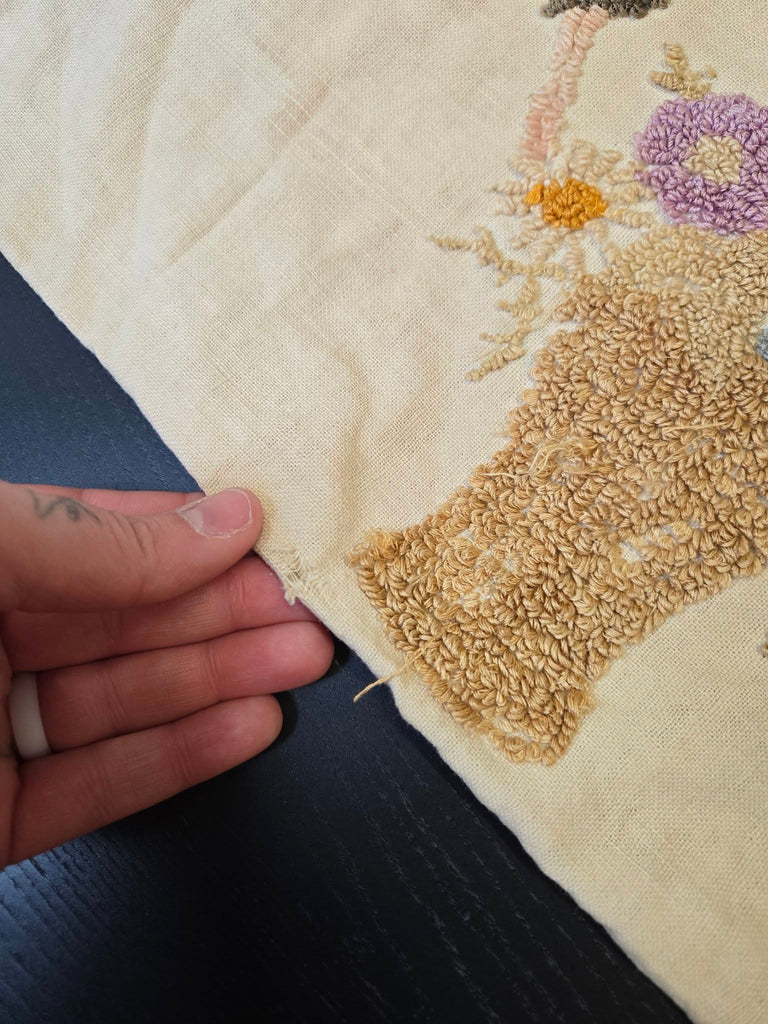 Vintage Embroidered Butterfly and Basket Pillow Case