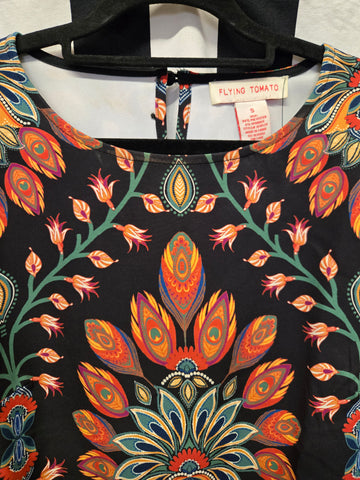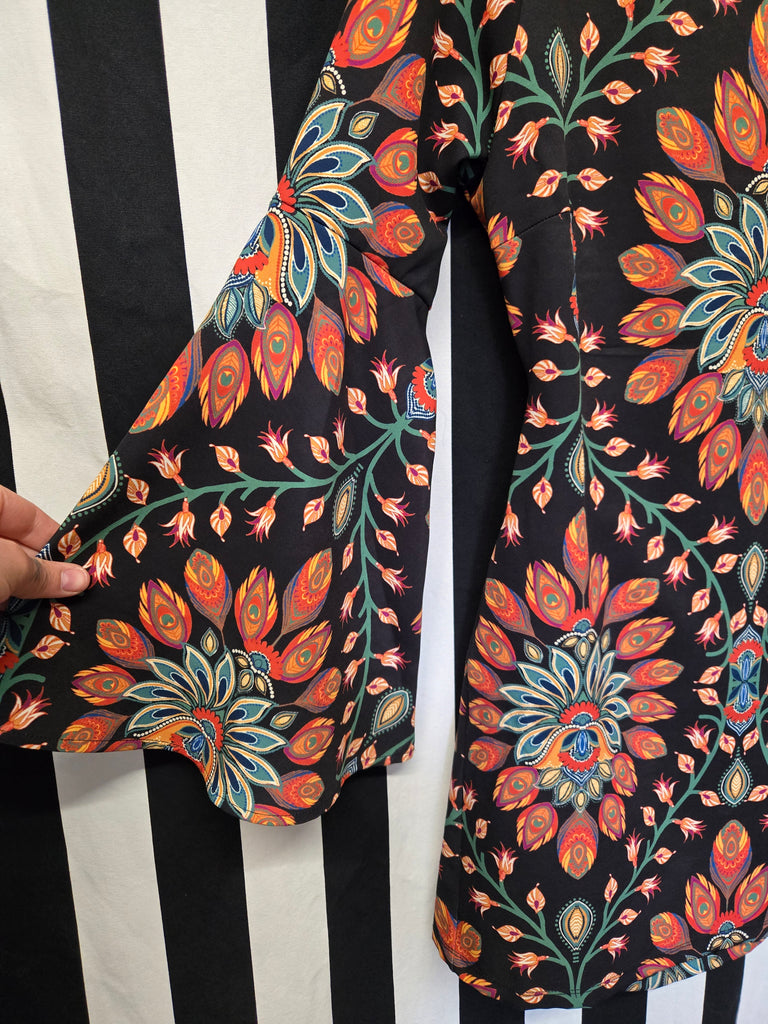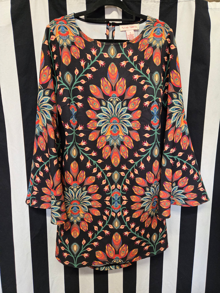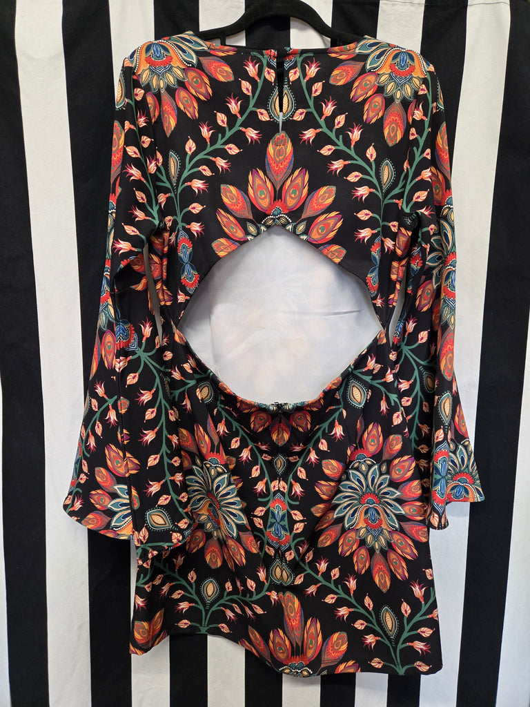 Flying tomato orange mandala print bell sleeve dress with back cut out