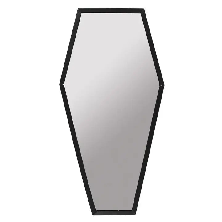 Add some gothic flair to the home or garden with this unique, coffin-shaped mirror. Suitable to be used indoors and out, this piece is sure to make a dark statement. Keep out of harsh weather.