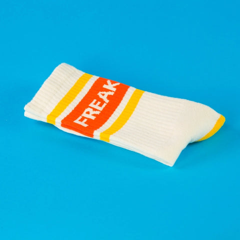 Sometimes all it takes is a single word to let the world know what's up. These socks are for all the FREAKS out there. For when your freak flag is too cumbersome, opt for freak socks.