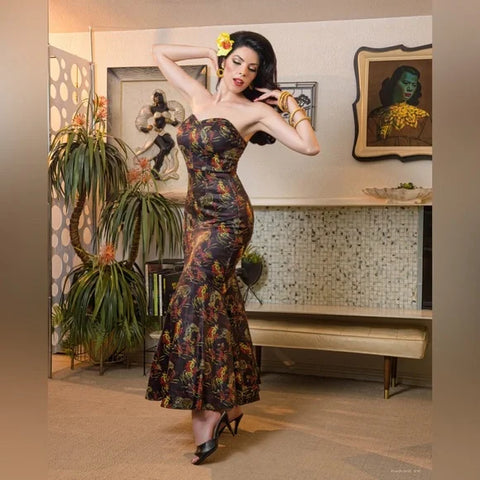 Gently used Boulevard Nights Wild Tiger Dress. This dress features a mermaid fit and flair style with a sweetheart neckline, adjustable/removable straps, zipper closure.
