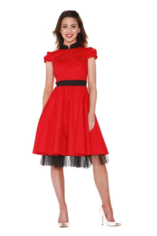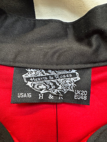 Gently used Hearts and Roses Far East dress. This dress features capped shoulders, button details, and a built in crinoline.