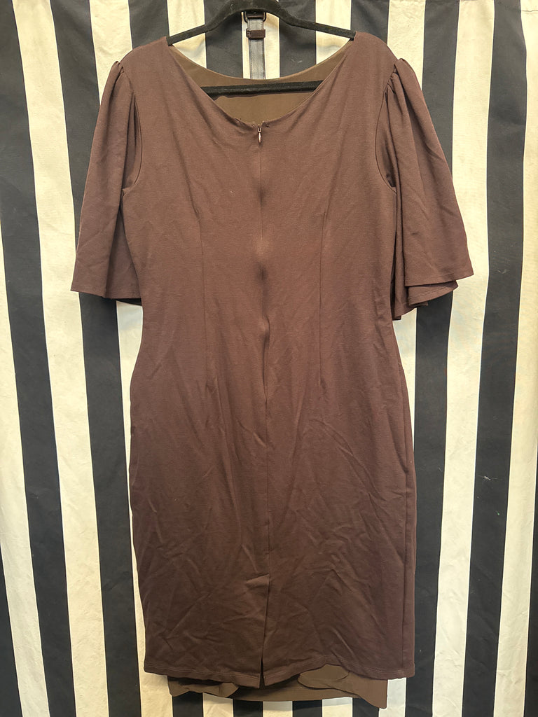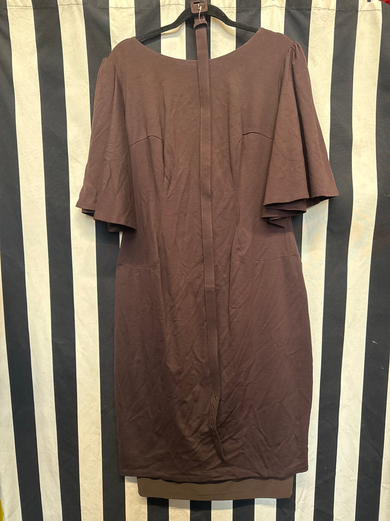 Gently used Miss Kitty Dress by Vixen. This dress features a boat neckline, elbow length angel sleeve, zipper closure, and matching belt.