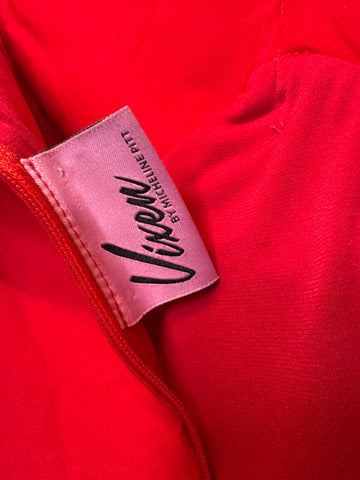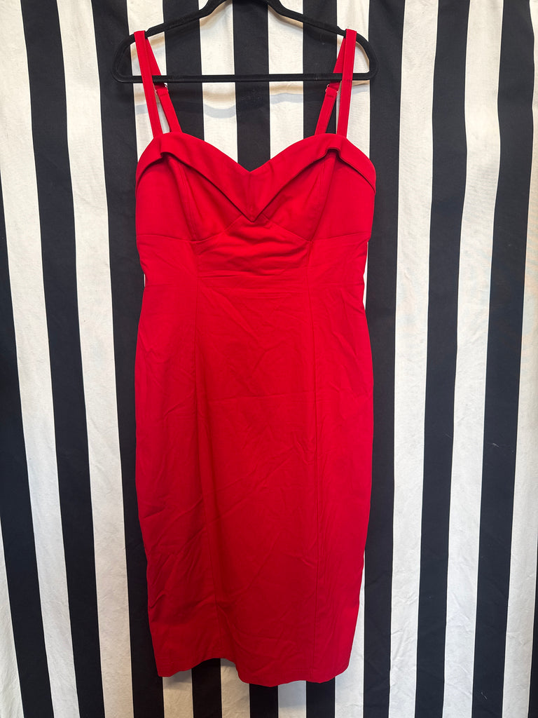 Gently used Vixen Maneater dress. This dress features a sweetheart neckline, adjustable straps, zipper closure, and back slit.