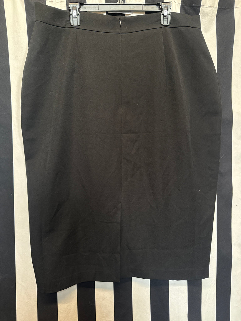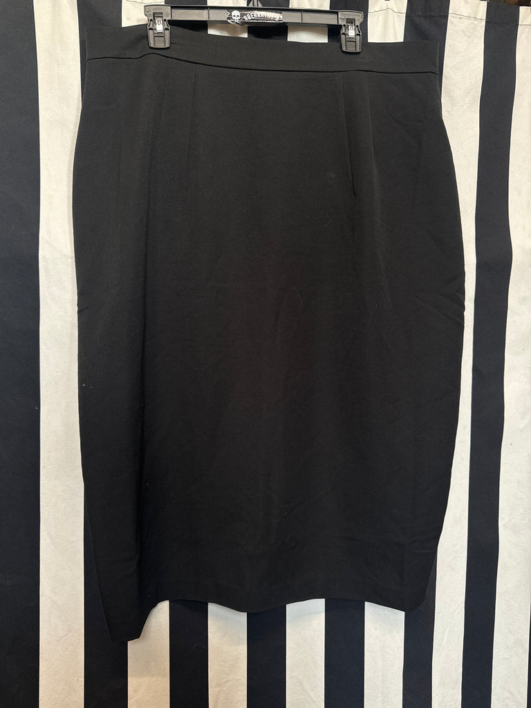 This pencil skirt features a back zip, a fused waist band, a soft lining, and a back slit for easy movement. The skirt sits at true waist.