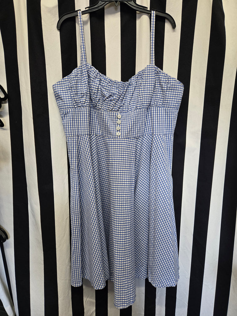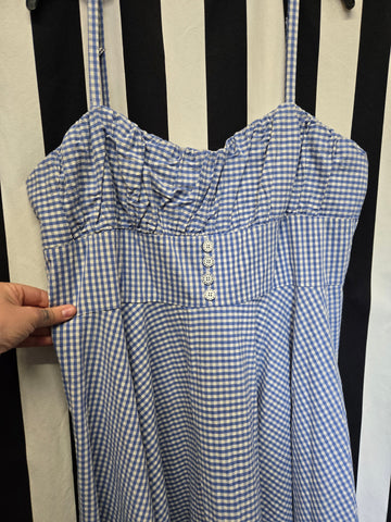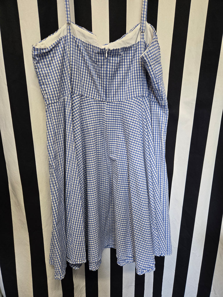 Timeless London blue gingham fit and flare dress with adjustable straps and zipper closure