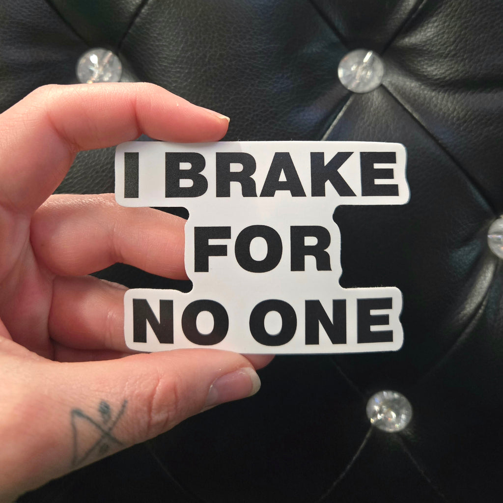 Have you ever just been at home, minding your business, watching the 1988 classic 'Elvira: Mistress of the Dark' and you see her 'I brake for no one' sticker on her beauty case, and wonder to yourself... 'I need one of those!'. Well we made this just for you!
