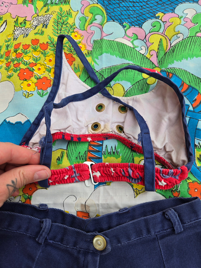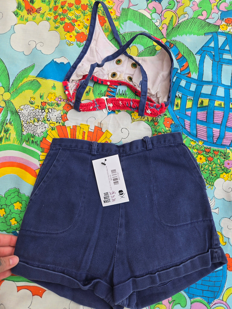 Vintage 60s red white and blue swim set with anchor and star print top and navy shorts