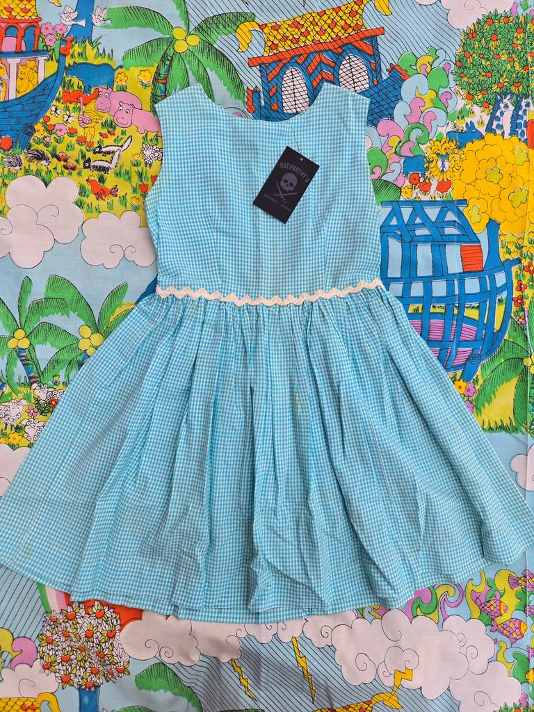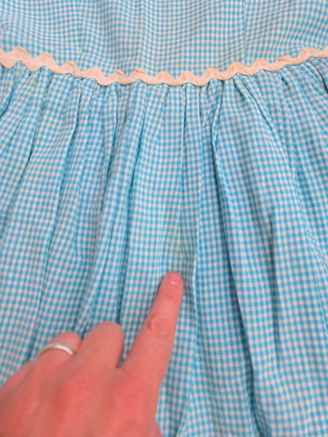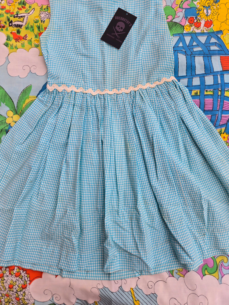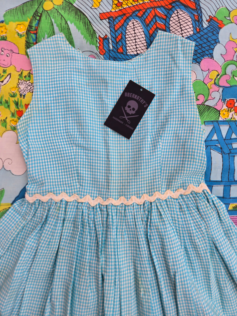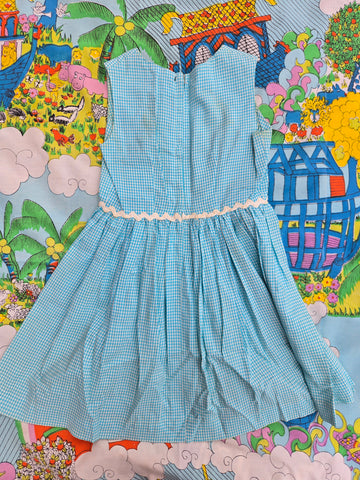 Vintage 50s teal and white Gingham fit and flare dress with ric rac trim