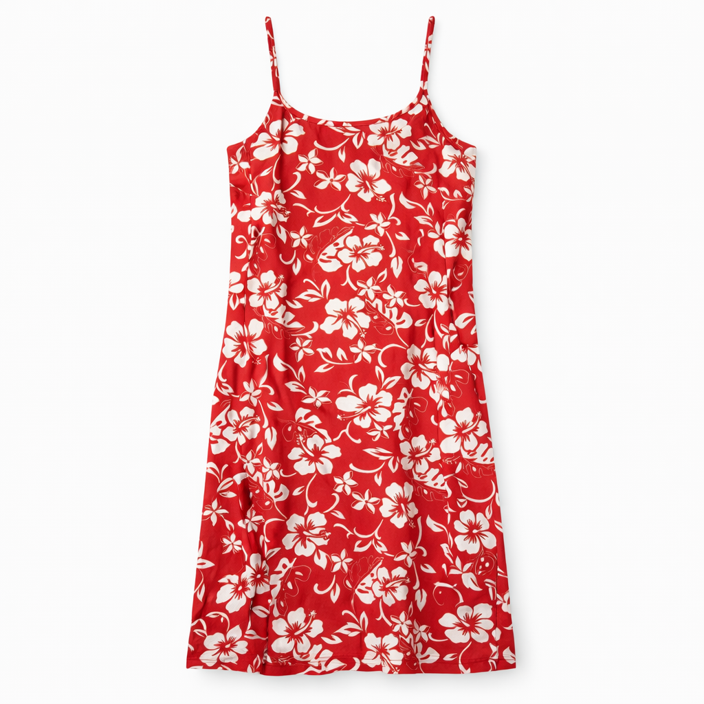 Vintage Y2K Red and white hibiscus pattern wiggle dress ONLY