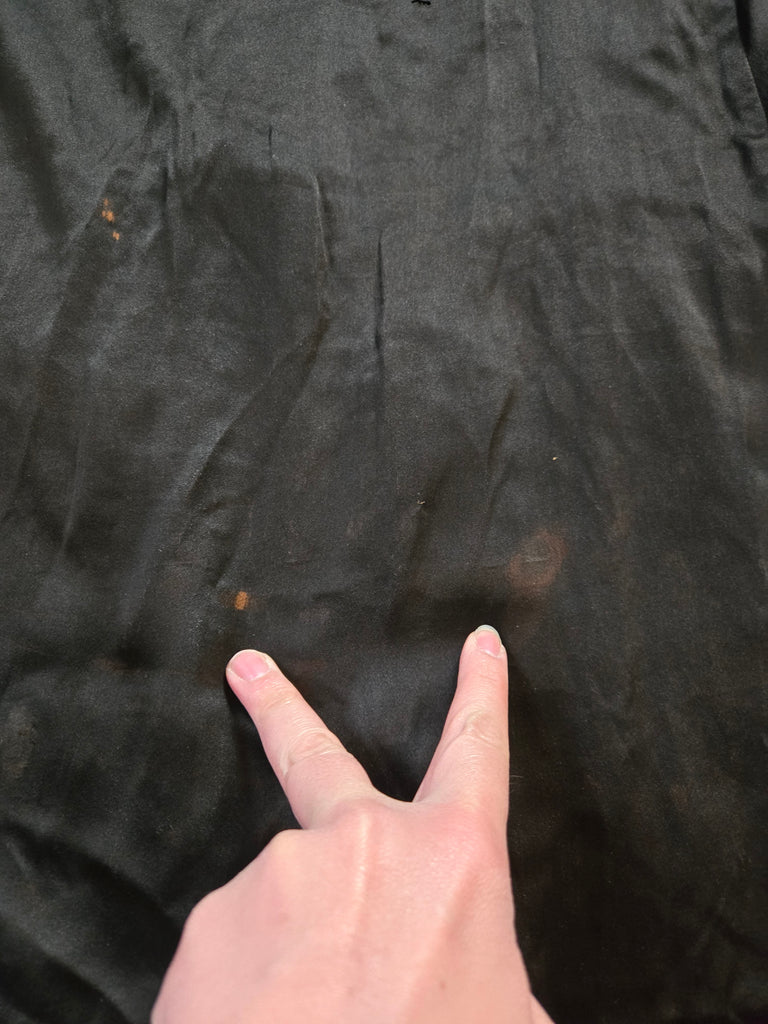 Damage: Missing snaps on wrist, fading throughout, and rust spots throughout