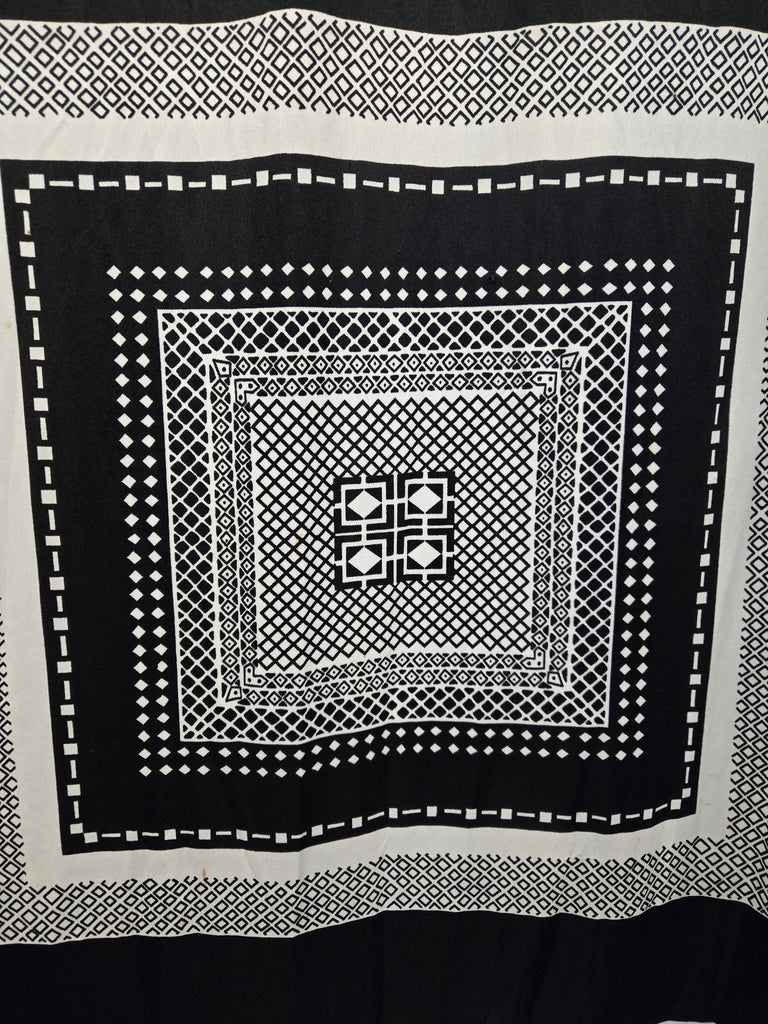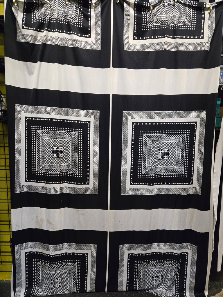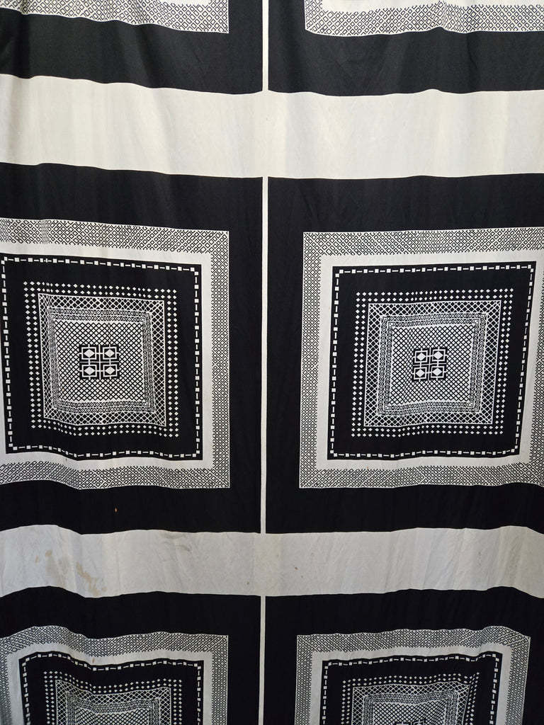 Vintage 70s Set of 4 Black and White Geometric Curtains