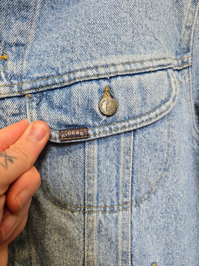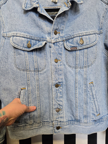 Vintage 90s light wash denim jacket. This jacket features pockets and button closure.