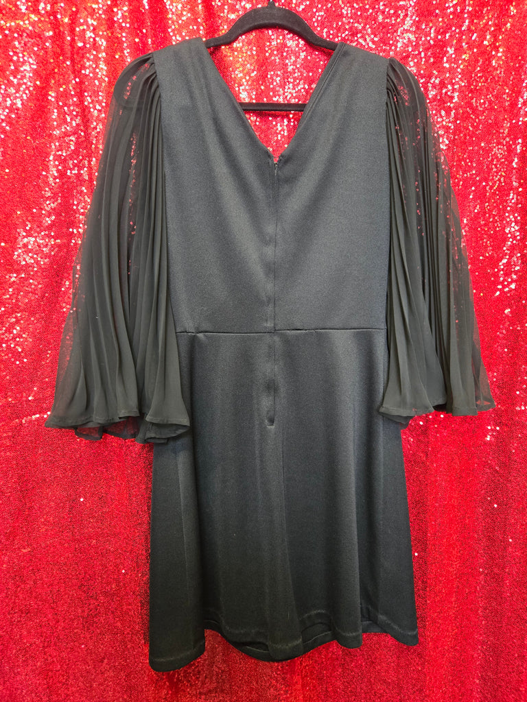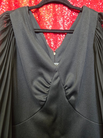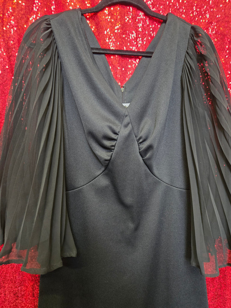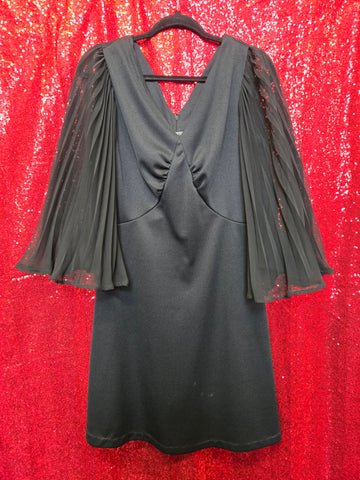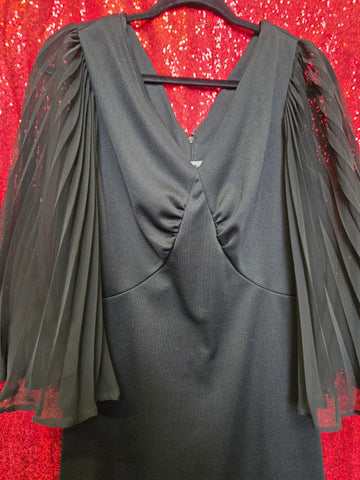 Vintage 1970s black angel sleeve dress with zipper closure in back