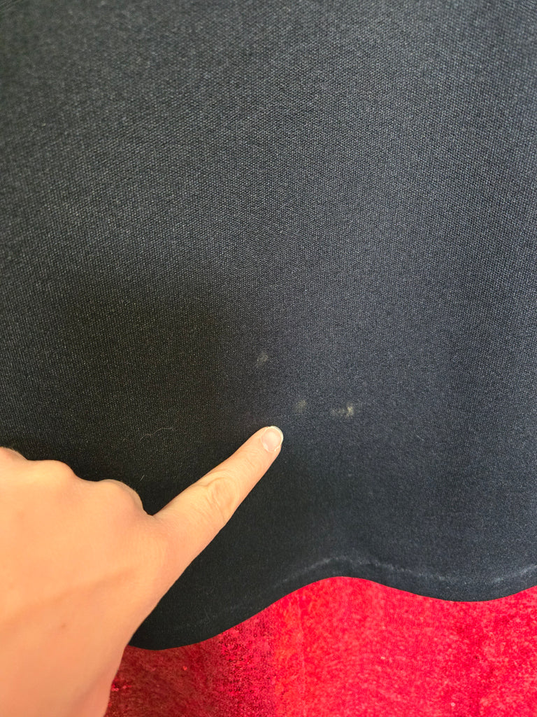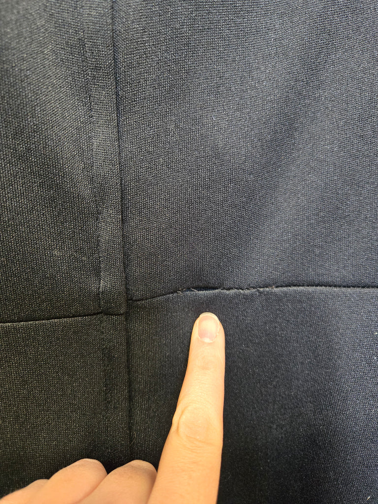 Damage: staining on front and popped stitching along the seam in back