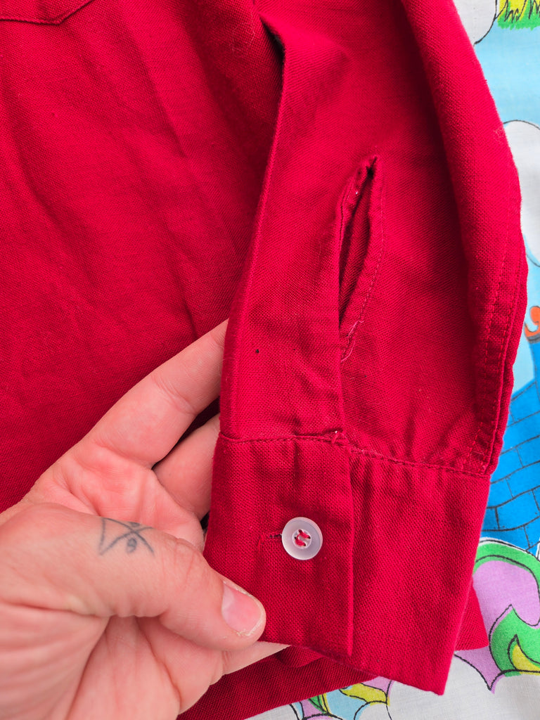 Vintage 1960s burgundy chainstitched button up shirt 'My dad belongs to Blackhawk Shrine Club'