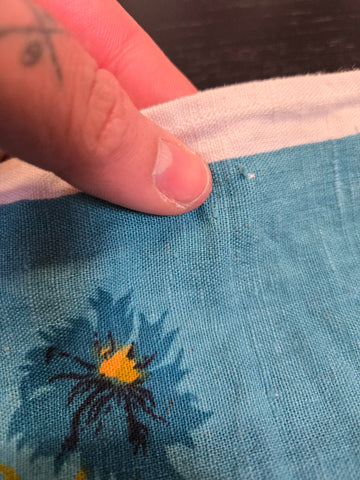 Damage: small runs in fabric and small stains in the center of the design