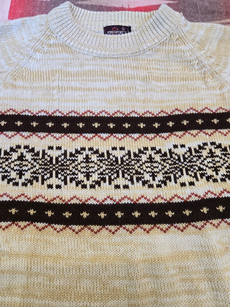 Vintage 70's Tan & Brown Snowflake Sweater