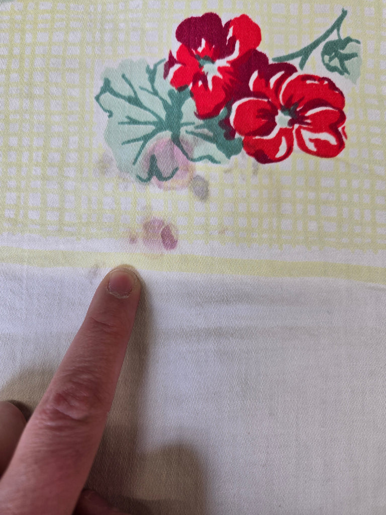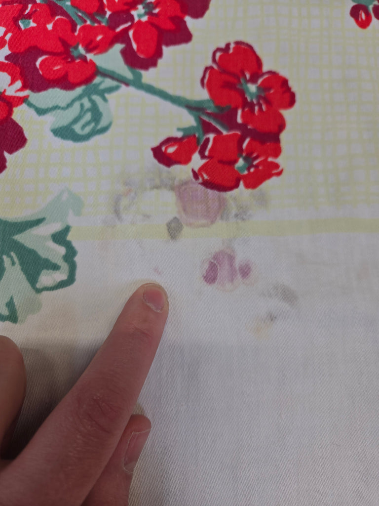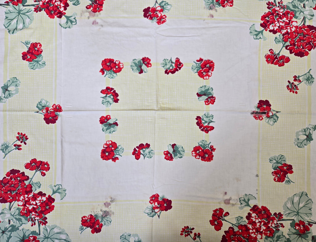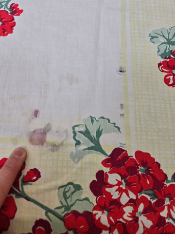 Vintage Red Yellow and White Floral Tablecloth