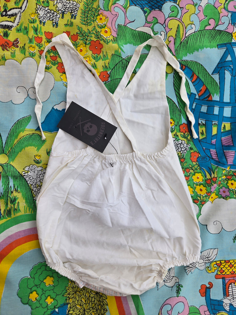 Vintage 40s pink and blue plaid zig zag romper