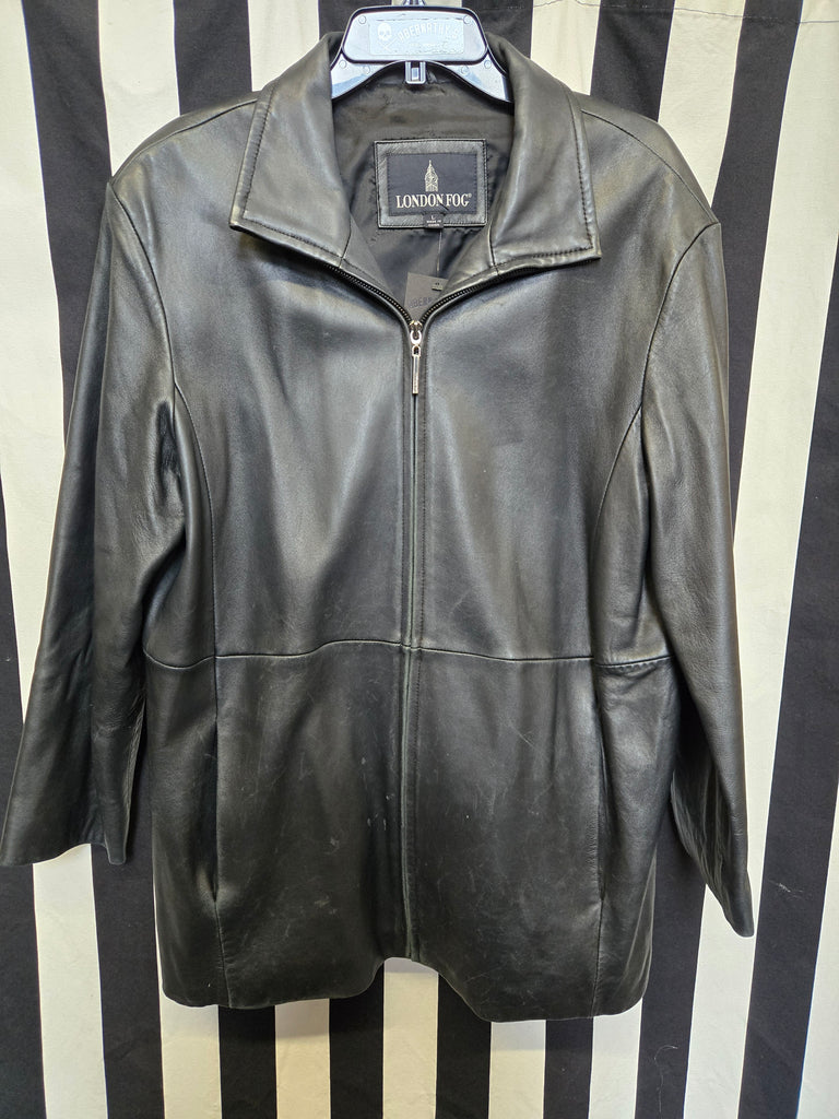 Vintage 90s black zip up jacket. This jacket is a longer trench style with exterior pockets.