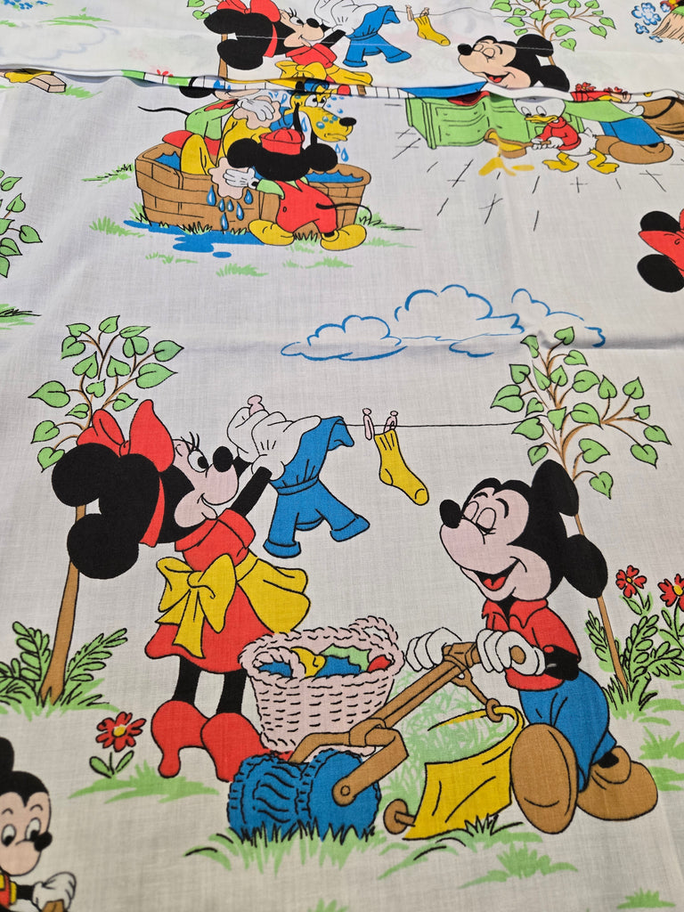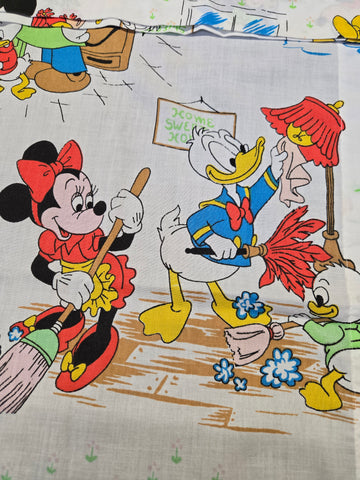 Vintage Mickey Mouse bedsheets turned into window valance and curtain