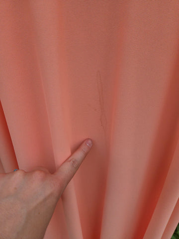 Damage: staining on front and missing eye for hook at neckline