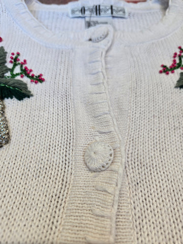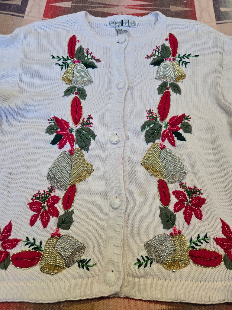 Vintage 90's White Christmas Bell Sweater Cardigan